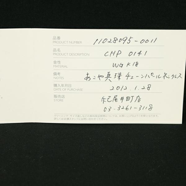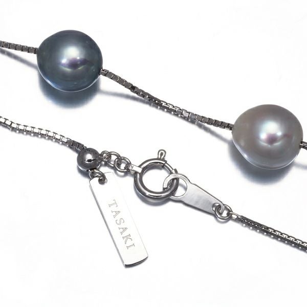 TASAKI タサキ ネックレス パール 真珠 8.2-8.6mm ステーション ロング K18WG 保証書【中古】BLJ