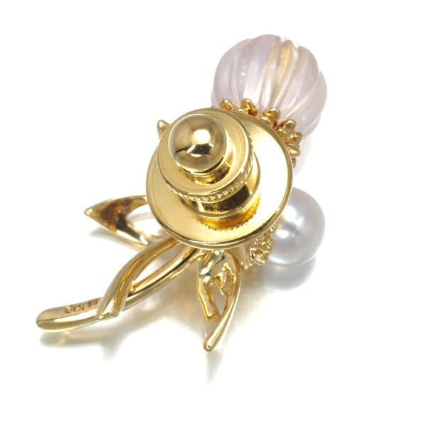 ミキモト ブローチ クォーツ パール アコヤ真珠 5.5mm フラワー ピン K18YG/合金 【中古】BLJ