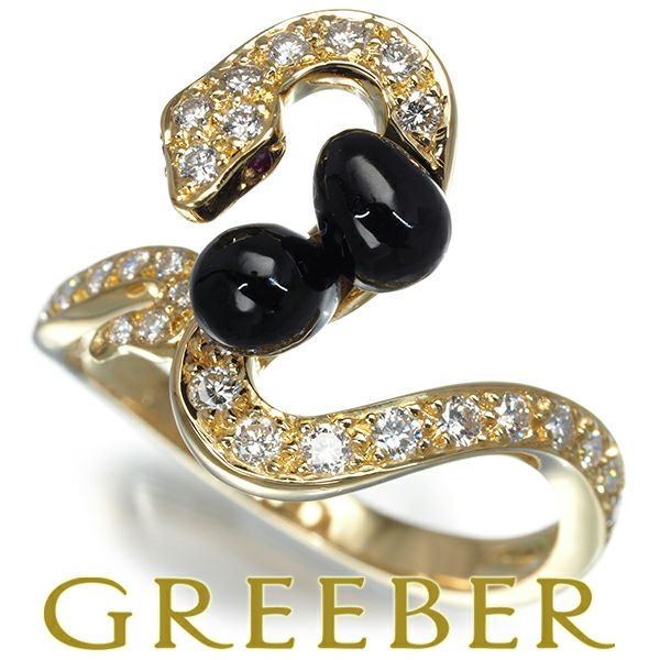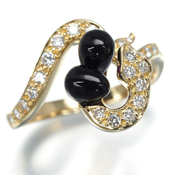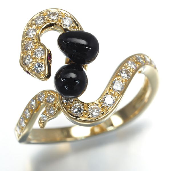 【スプリングキャンペーン!11%対象商品】カレライカレラ リング ダイヤ ダイヤモンド オニキス ルビー 蛇 ヘビ アニマル 12号 K18YG 保証書【中古】BLJ