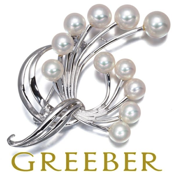ミキモト ブローチ パール 真珠 5.8-7.5mm リーフ シルバー 【中古】BLJ