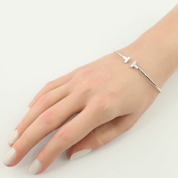 ティファニー ブレスレット Tワイヤー ナロー バングル K18WG 【中古】BLJ