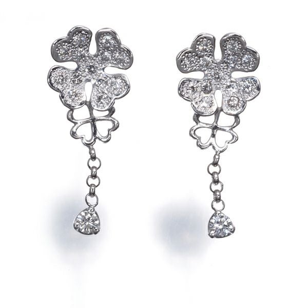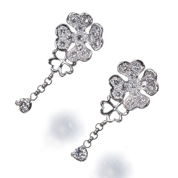 ラッキーモチーフのクローバーに厳選ダイヤモンドの美しい輝きが繊細に揺れ煌めく ランバンの素敵なピアス。装いを美しく飾ってくれる上品な一品ですよ。