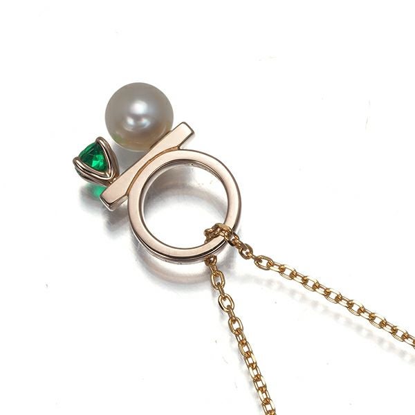 【ポイントアップ対象商品】TASAKI タサキ ネックレス パール 真珠 4.0mm エメラルド プチバランスクラス K18PG 【中古】BLJ
