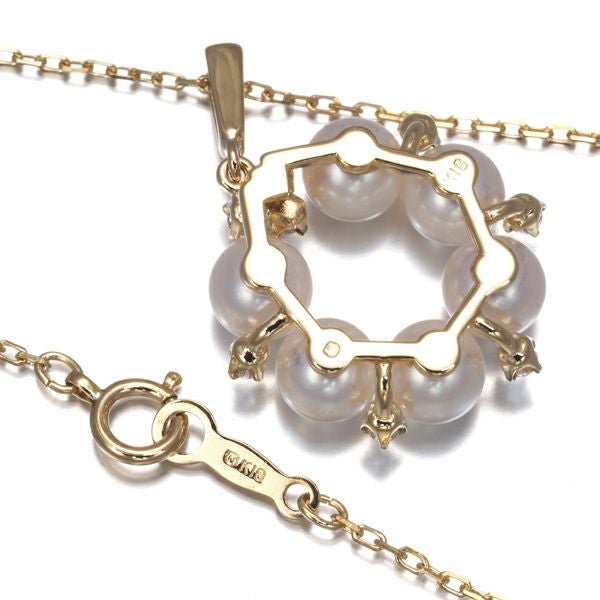 【ポイントアップ対象商品】ミキモト ネックレス パール 真珠 5.3mm ダイヤ ダイヤモンド サークル K18YG 【中古】BLJ