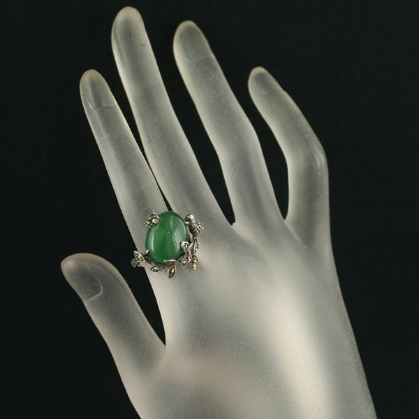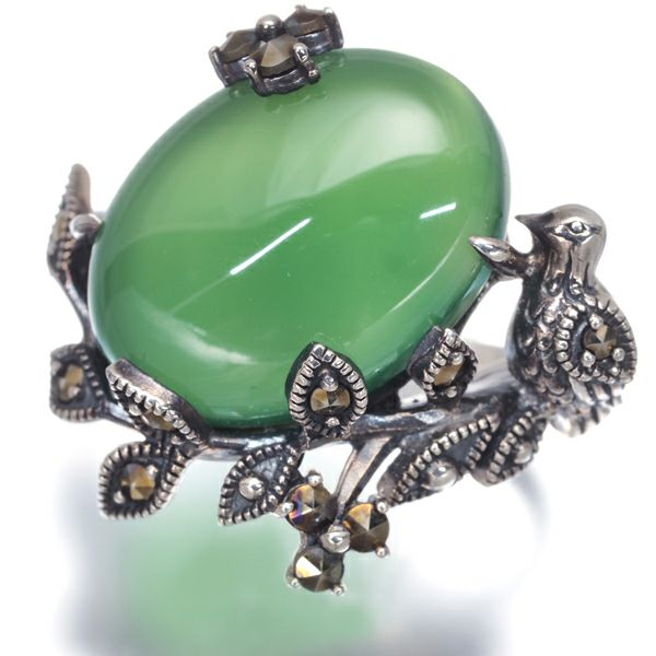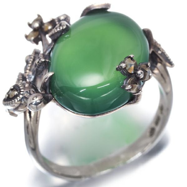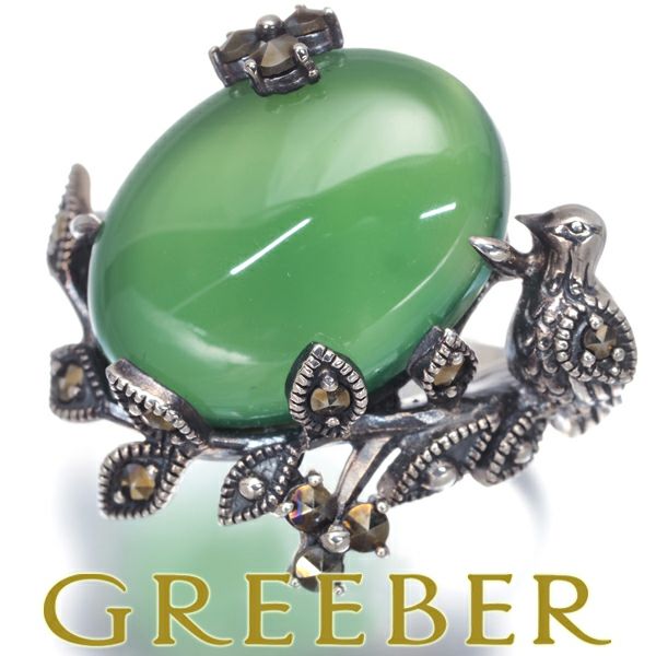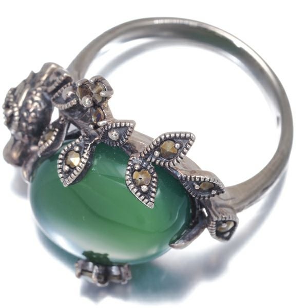 碌山 ロクザン リング グリーンメノウ マーカサイト 13号 シルバー 925 【中古】BLJ/GENJ