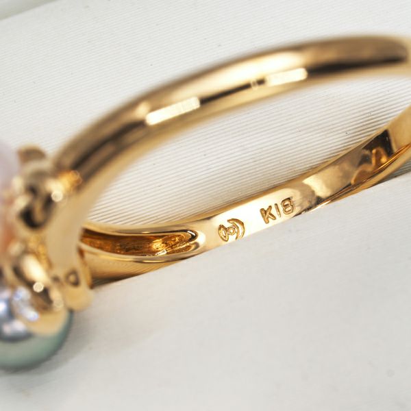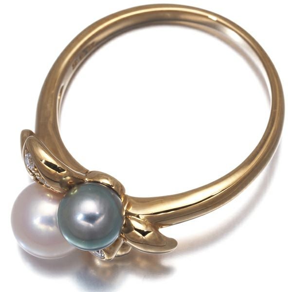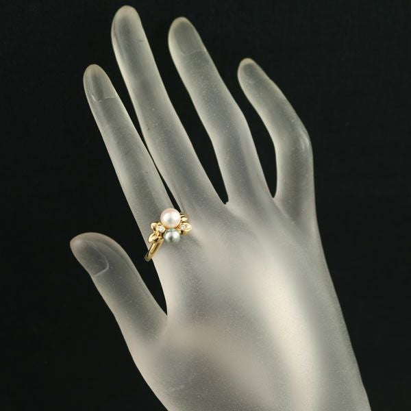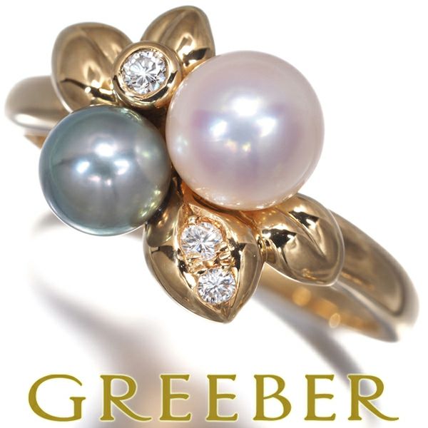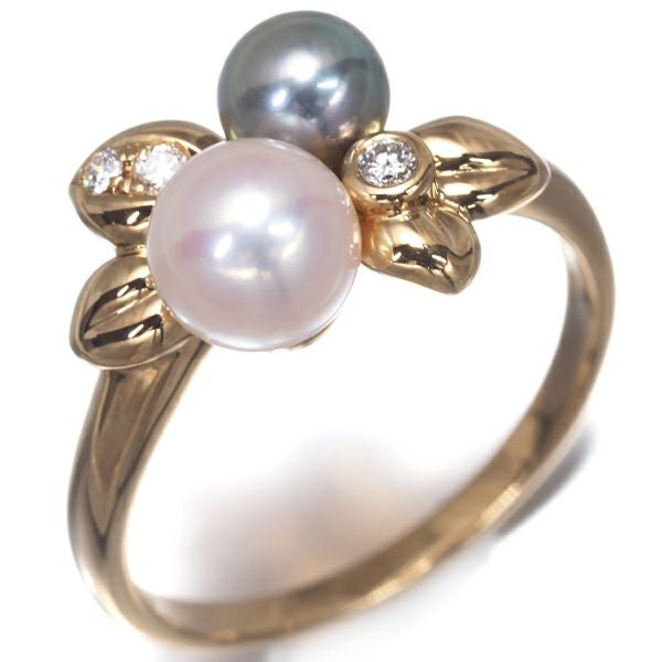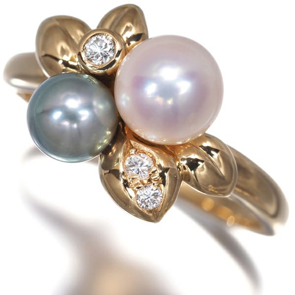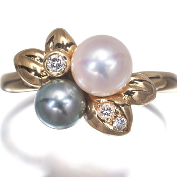 TASAKI タサキ リング グレーパール 真珠 5.4-6.5mm ダイヤ ダイヤモンド 0.06ct リーフ 14号 K18YG 【中古】BLJ