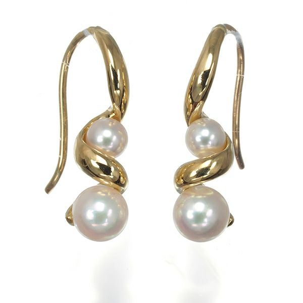 ミキモト ピアス ベビーパール 真珠 3.5-4.7mm スパイラル フック K18YG 【中古】BLJ