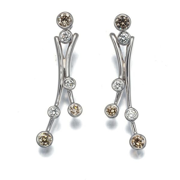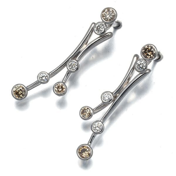 その名の通り、厳選したブラウン&クリアダイヤをベゼルセッティングしてリズミカルな輝きを演出した カシケイのベゼル ダイヤモンドピアスです。