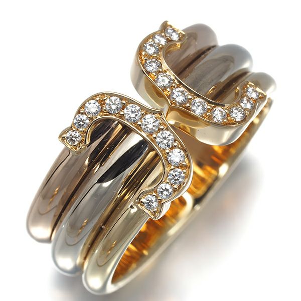 カルティエ リング ダイヤ ダイヤモンド 2C ドゥーブルC C2 スリーカラー LM 56号 K18YG/WG/PG 【中古】BLJ