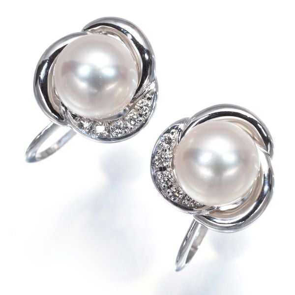 TASAKI タサキ イヤリング パール 真珠 7.7mm ダイヤ ダイヤモンド 0.04ct/0.04ct Pt900 【中古】BLJ