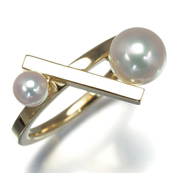 【ポイントアップ対象商品】TASAKI タサキ リング パール 真珠 4.6-7.5mm バランスクロス 14号 K18YG 保証書【中古】BLJ