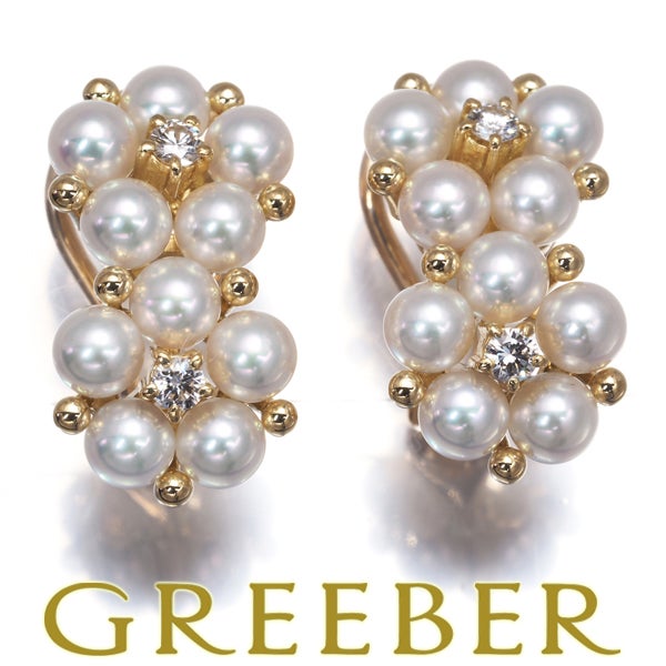 【スプリングキャンペーン!11%対象商品】ミキモト イヤリング ベビー パール 真珠 4.0mm ダイヤ ダイヤモンド フラワー K18YG 【中古】BLJ