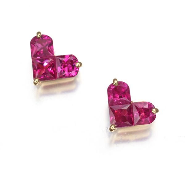色美しい輝きを放つルビーの彩りを、愛らしいハートモチーフに飾った スタージュエリーのミステリアスハートピアスです。