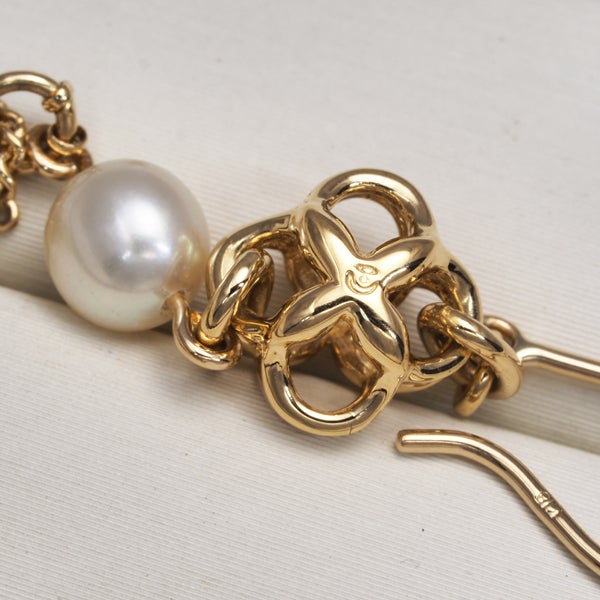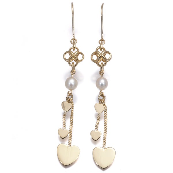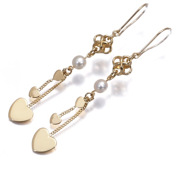 艶やかなパールの煌めきと共に眩い光沢を披露するハートチャームが耳元で揺れ煌めくタサキのピアスジュエリーです。