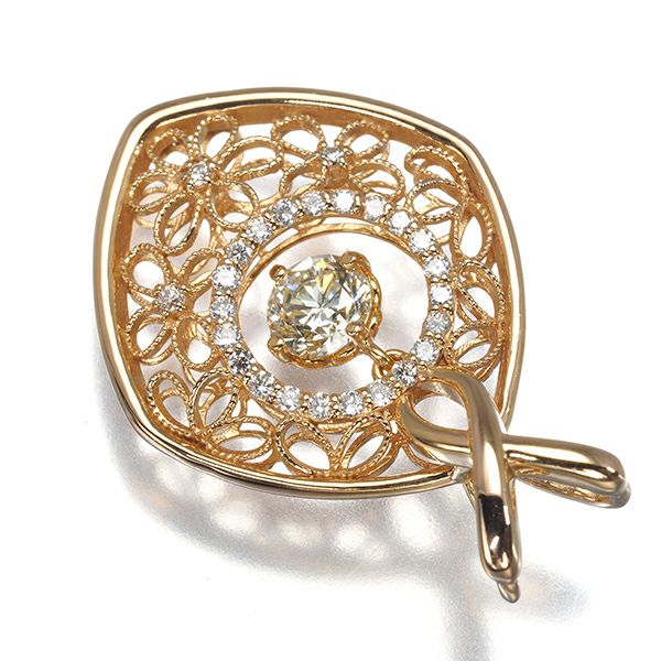 繊細な彫金と透かしを演出したアンブローズのジュエリー。オープンサークルのフレームにはメレダイヤの煌めきを飾り、中央でイエローカラーを纏った上質ダイヤモンドが揺れ煌めきを魅せてくれます。