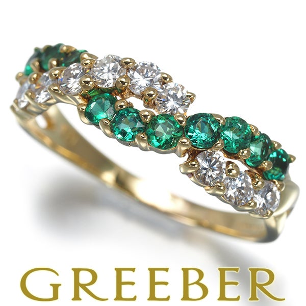 レア品 ティファニー リング エメラルド ダイヤ ダイヤモンド 16号 K18YG 【中古】BLJ