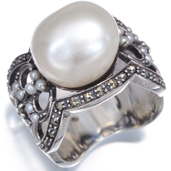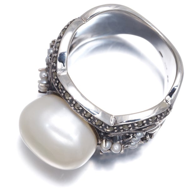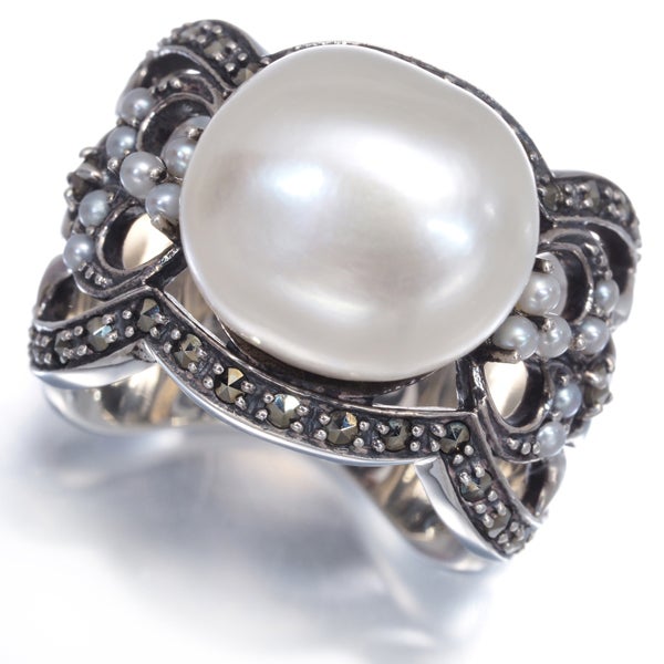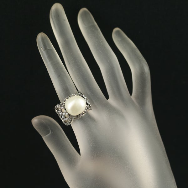 【スプリングキャンペーン!11%対象商品】碌山 ロクザン リング シード パール 真珠 13.3mm パール 真珠 1.8mm マーカサイト 12.5号 シルバー 925 【中古】BLJ/GENJ