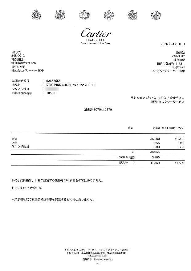 カルティエ リング ツァボライト オニキス パンテール SM 56号 K18PG 修理証明書【中古】BLJ