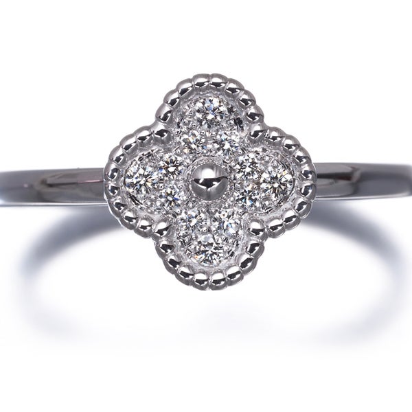 2007年に誕生したミニチュアサイズのアルハンブラコレクションのダイヤモンドリング。繊細なビーズ枠と共に上質ダイヤモンドが輝く逸品です。