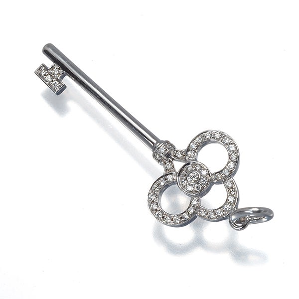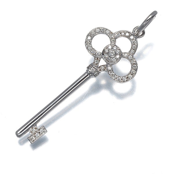 ティファニー ペンダントトップ ダイヤ ダイヤモンド クラウンキー チャーム K18WG 【中古】BLJ