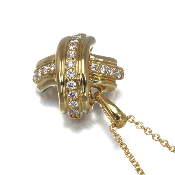 Xを描いた立体的な煌めきが美しいモチーフに上質ダイヤの輝きを飾った ティファニーのシグネチャー ダイヤモンドネックレスです。