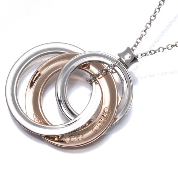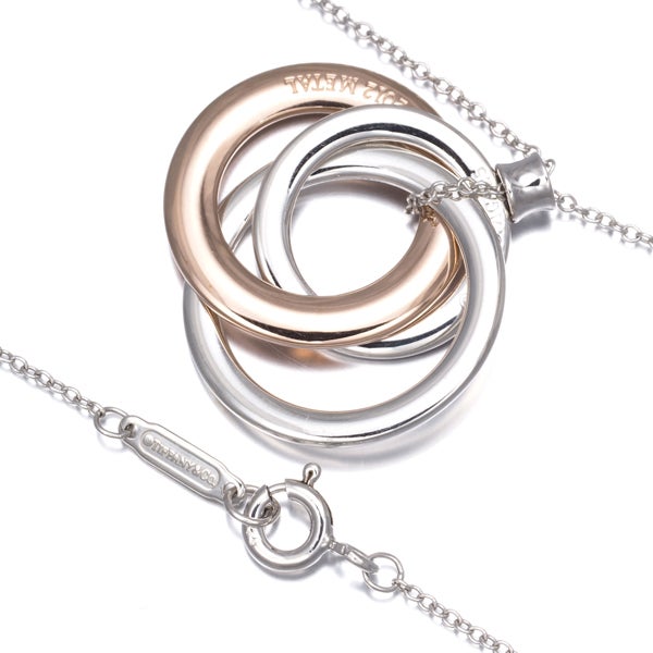 絡み合うサークルのモチーフが胸元に艶やかな輝きを与えてくれる ティファニーのインターロッキングネックレスです。