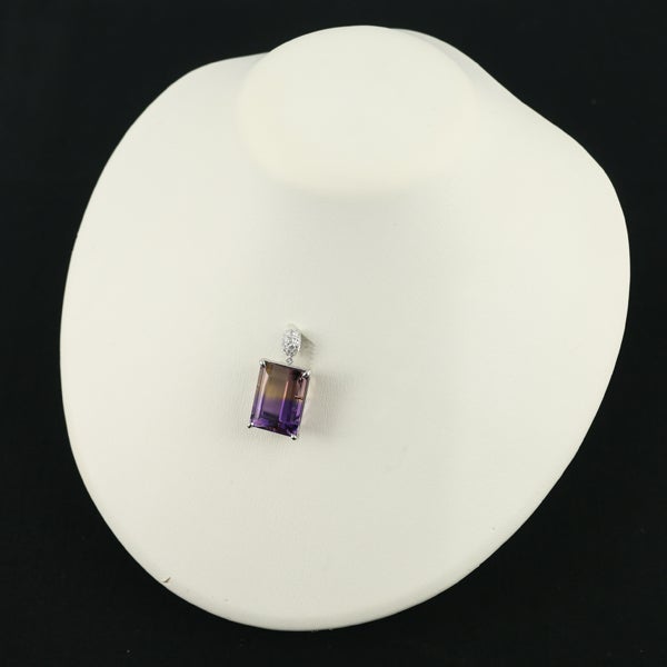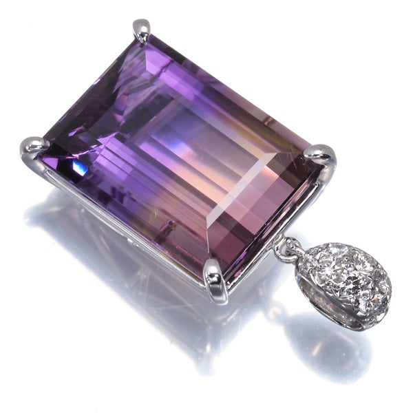 神秘的な彩りが美しいアメトリンの輝きをを存在感溢れるボリュームにご堪能いただける タサキの美しいペンダントトップ。トップには厳選ダイヤが眩いコントラストを描いて輝き 装いを贅沢に演出してくれます。