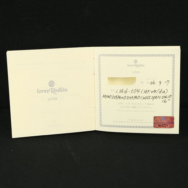 【ポイントアップ対象商品】ローリーロドキン ネックレス MIX DIAMOND SHAPED/CROSS 41cm K18WG 保証書【中古】BLJ