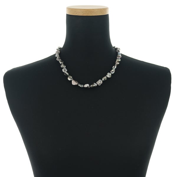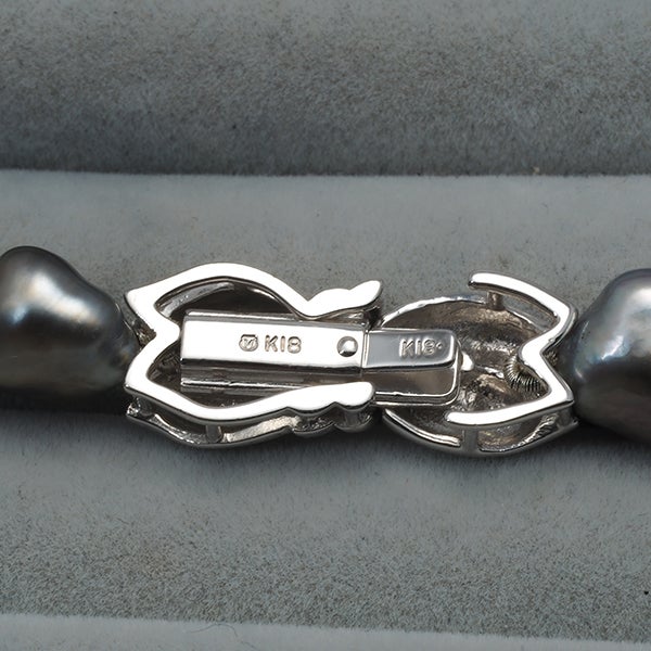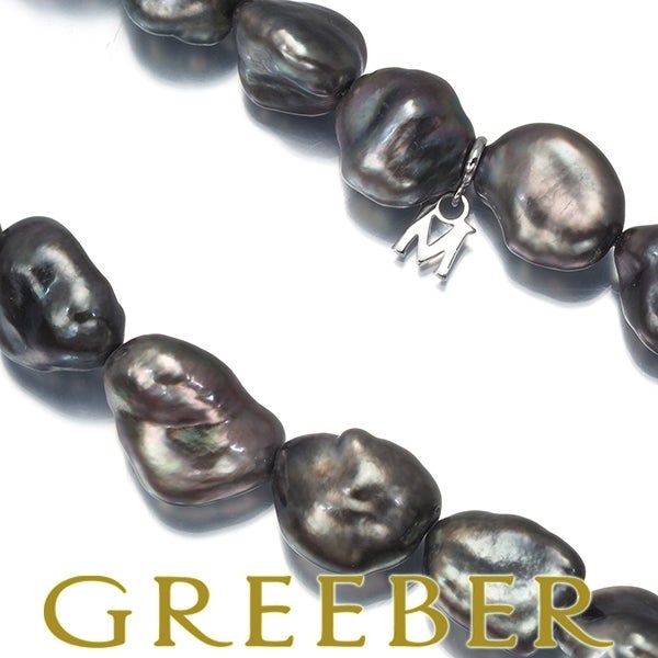 ミキモト ネックレス バロック ブラック パール 真珠 8.0-12.0mm K18WG ソーティング【中古】BLJ
