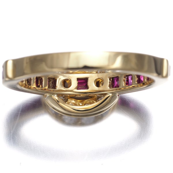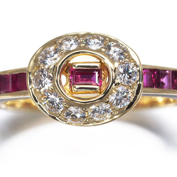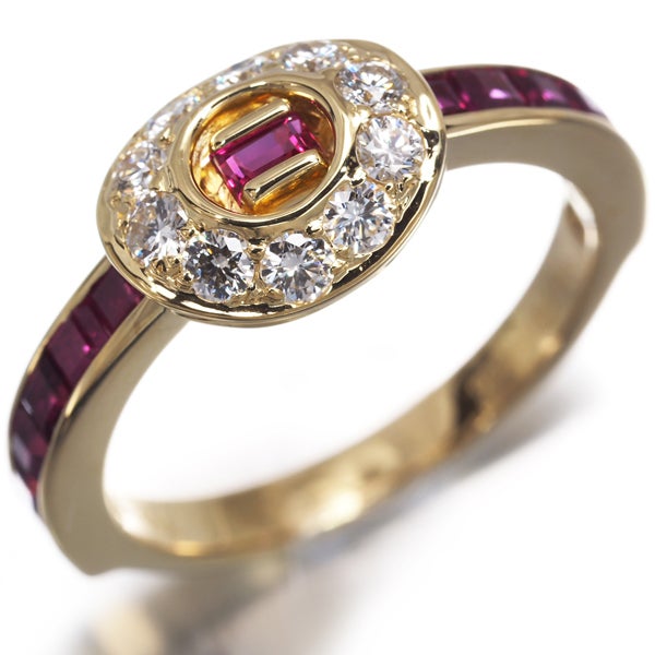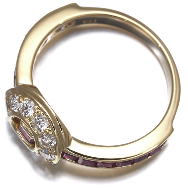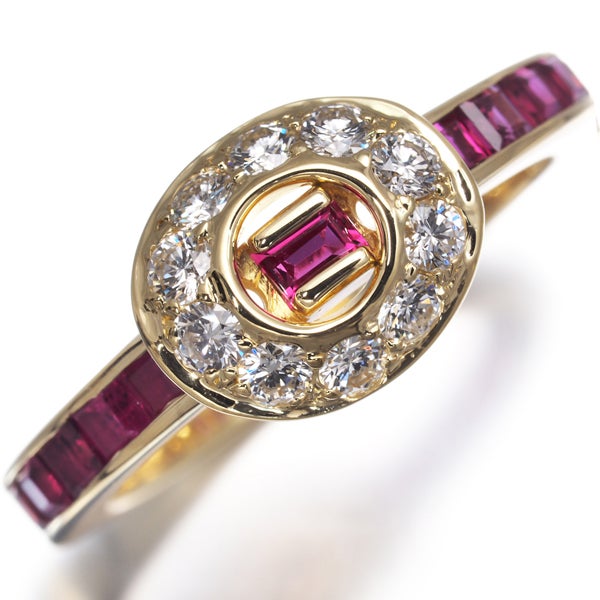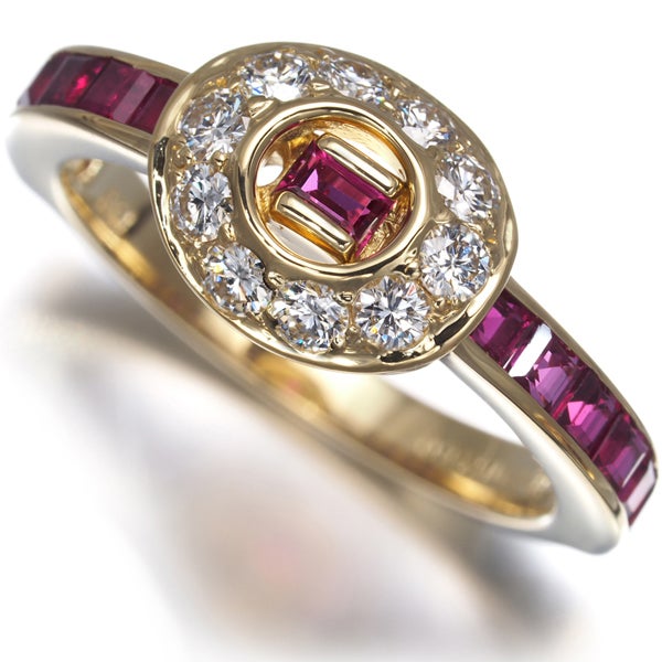 眩いテリと色鮮やかな煌めき美しいルビーをレールセッティングで飾ったティファニーのリング。メインにはサークルに輝く厳選ダイヤモンドの輝きを演出したエレガントなジュエリーです。