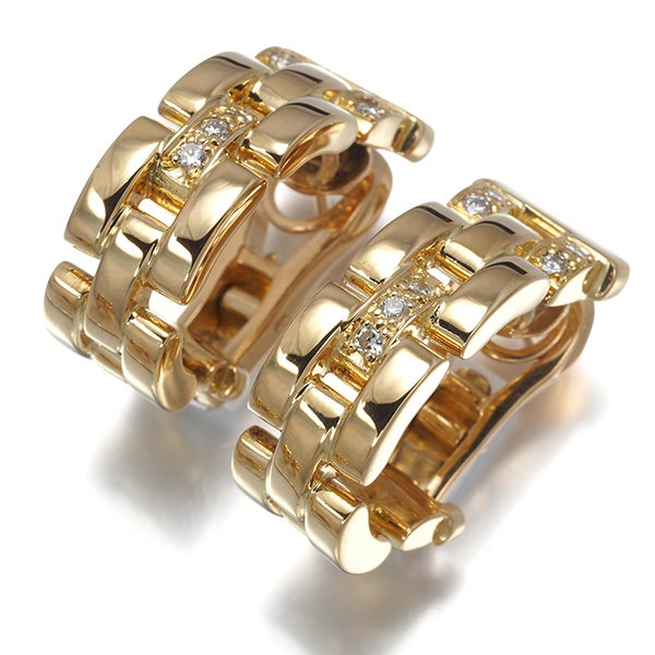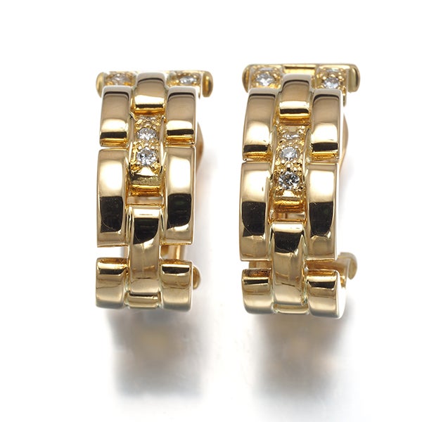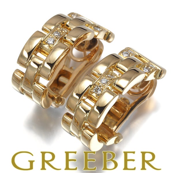 カルティエ ピアス ダイヤ ダイヤモンド マイヨンパンテール 3ロウ K18YG 【中古】BLJ