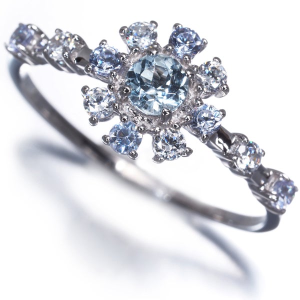 サマンサティアラ×ディズニーのコラボレーションジュエリー 「アナと雪の女王」のエルサをイメージした素敵なリング。潤いを湛えたアクアマリンの美しい彩りをキュービックジルコニアの煌めきに飾った素敵なお品ですよ。