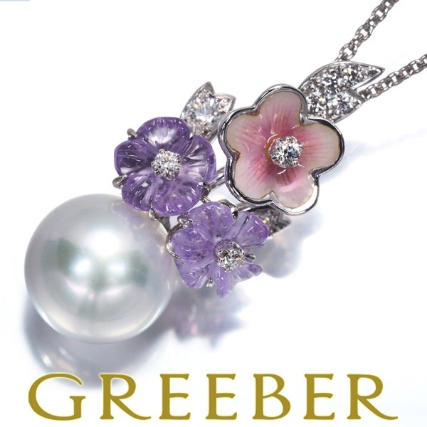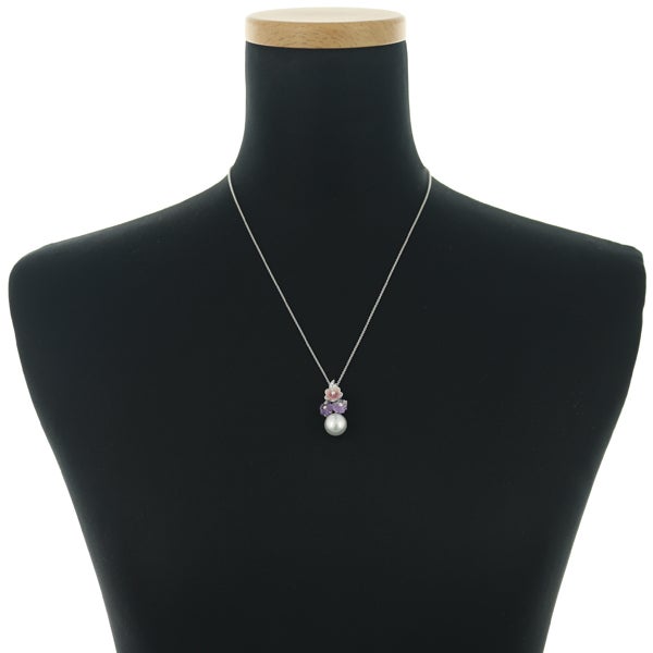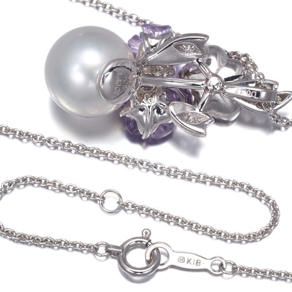 【ポイントアップ対象商品】ミキモト ネックレス パール 真珠 10.5mm アメジスト 1.43ct ダイヤ ダイヤモンド フラワー K18WG/エナメル ソ【中古】BLJ