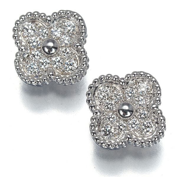 ヴァンクリーフ&アーペル ピアス ダイヤ ダイヤモンド スウィートアルハンブラ K18WG 保証書【中古】BLJ