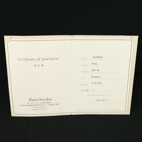 【スプリングキャンペーン!11%対象商品】ポンテヴェキオ リング ダイヤ ダイヤモンド 0.14ct ハーフエタニティ 10号 K18WG 箱/保証書【中古】BLJ