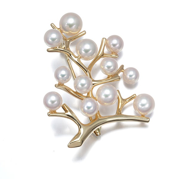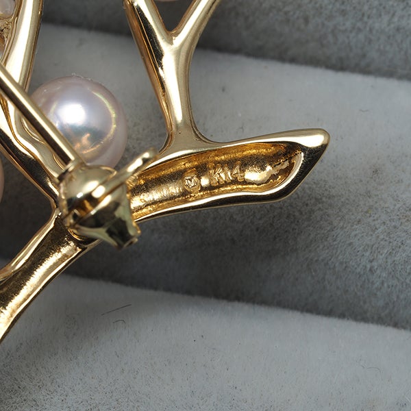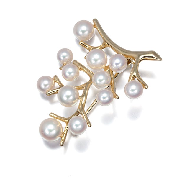 【スプリングキャンペーン!11%対象商品】ミキモト ブローチ パール 真珠 5.0-7.0mm 幸福の木 K14YG 【中古】BLJ