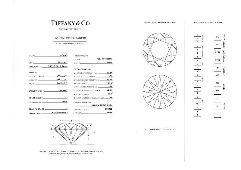 ティファニー ネックレス ダイヤ ダイヤモンド 0.20ct I IF 3EX ソレスト Pt950 鑑定書【中古】BLJ