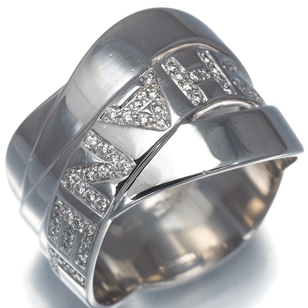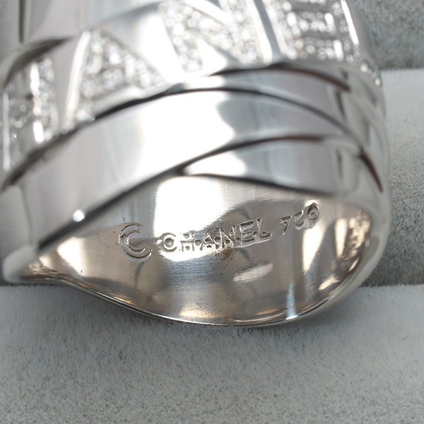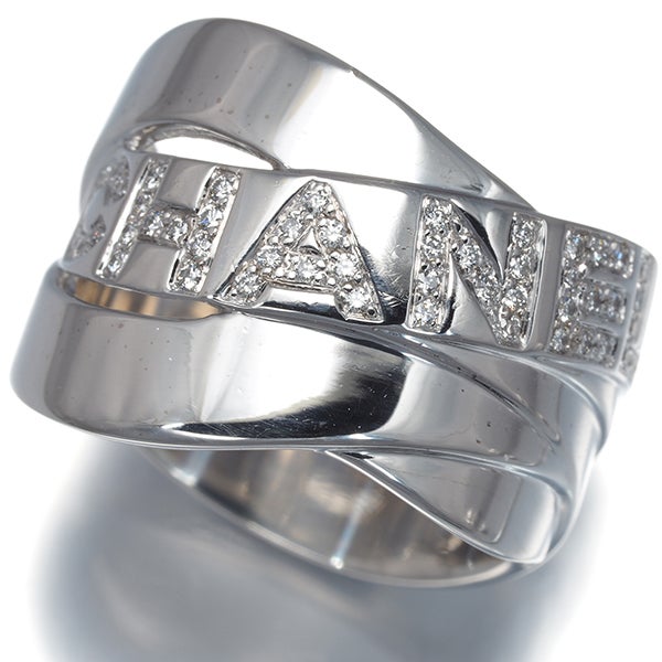 リボンが絡み合うような印象的なデザインに、厳選ダイヤで描かれたブランドネームが輝く シャネルのボルディック ダイヤモンドリングです。