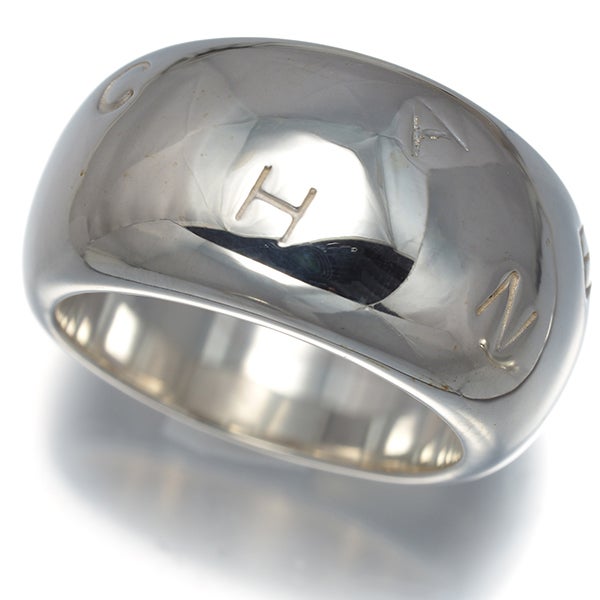 ボリューム溢れるシルバーの輝きへ シャネルのブランドネームを飾ったヴィンテージリングです。