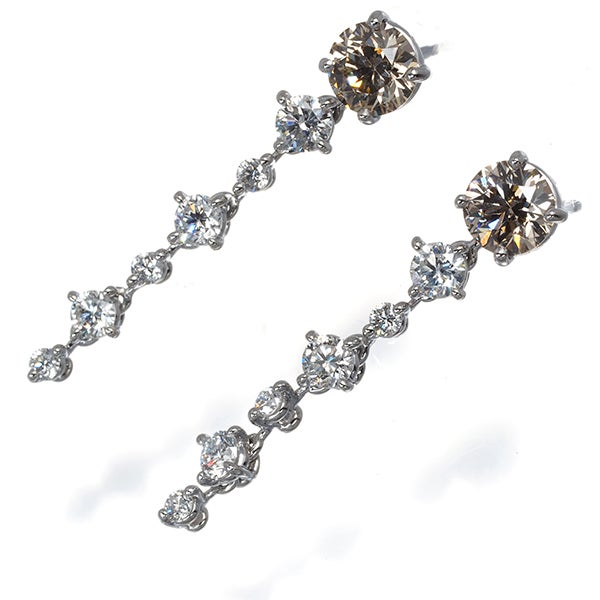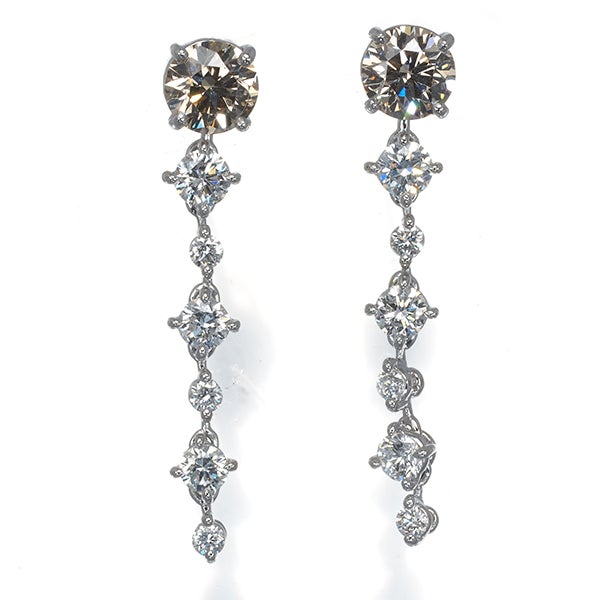 上質ブラウンダイヤモンドの大粒輝くカシケイのピアス。下部へグラデーションに連なる上質クリアダイヤの揺れ煌めきと共に耳元にエレガンスを与えてくれます。