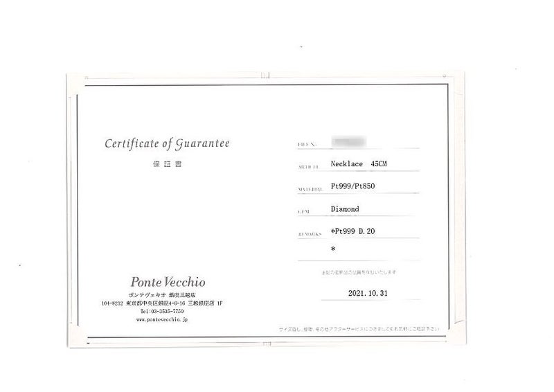 ポンテヴェキオ ネックレス ダイヤ ダイヤモンド 0.20ct サークル 透かし Pt850/Pt999 保証書【中古】BLJ