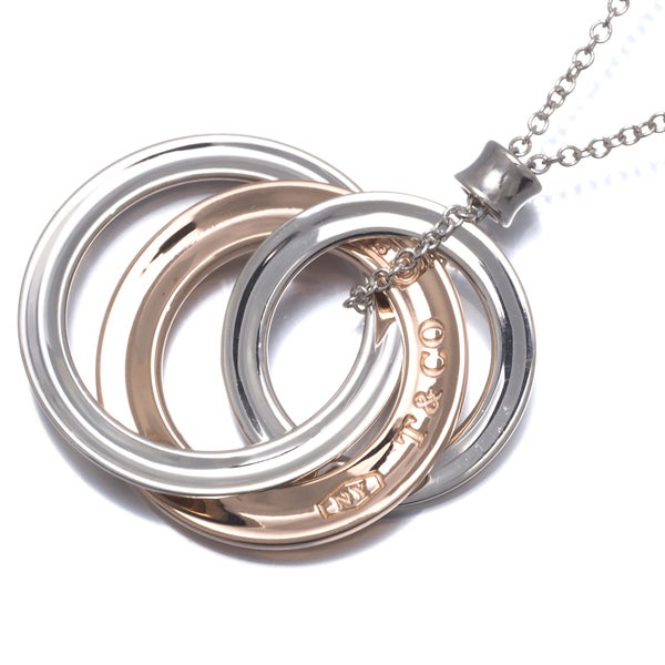 絡み合うサークルのモチーフが胸元に艶やかな輝きを与えてくれる ティファニーのインターロッキングネックレスです。