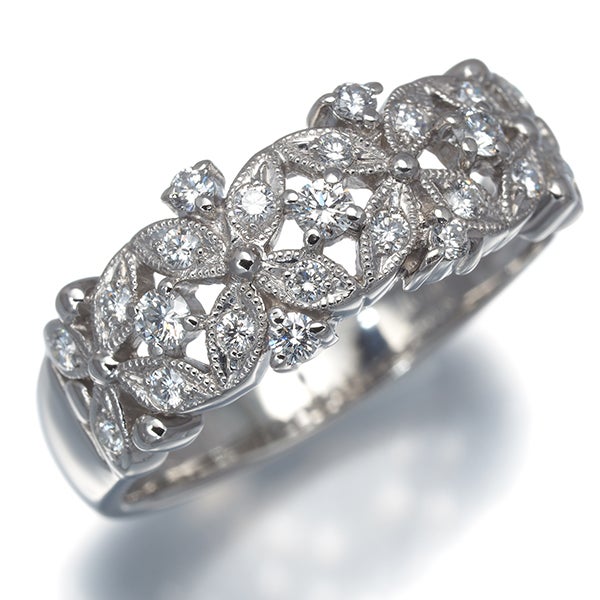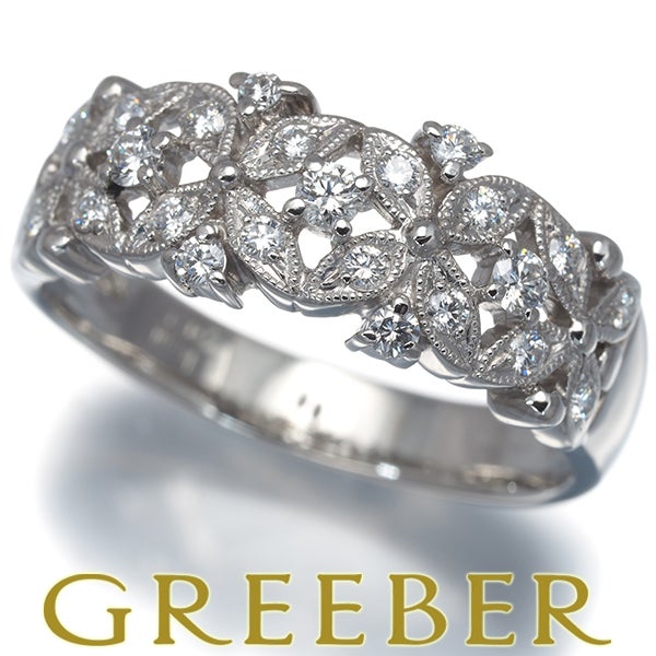 【スプリングキャンペーン!11%対象商品】平和堂 リング ダイヤ ダイヤモンド 0.418ct フラワー ミルグレイン 透かし 20号 Pt950 【中古】BLJ/GENJ
