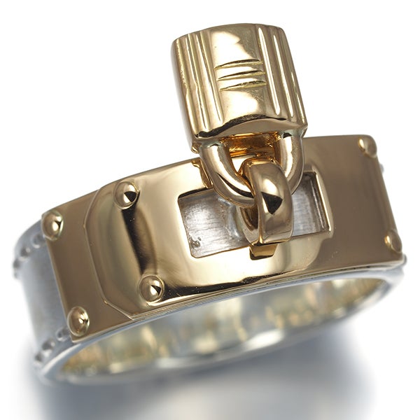 エルメスの代表的作品 ケリーバッグ のカデナをミニチュアサイズに飾った愛らしいリング。装いに上品な遊び心をさり気なく演出してくれますね。