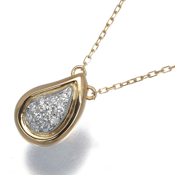 TASAKI タサキ ネックレス ダイヤ ダイヤモンド 0.11ct パヴェ ティアドロップ コンビカラー K18YG/Pt900 【中古】BLJ