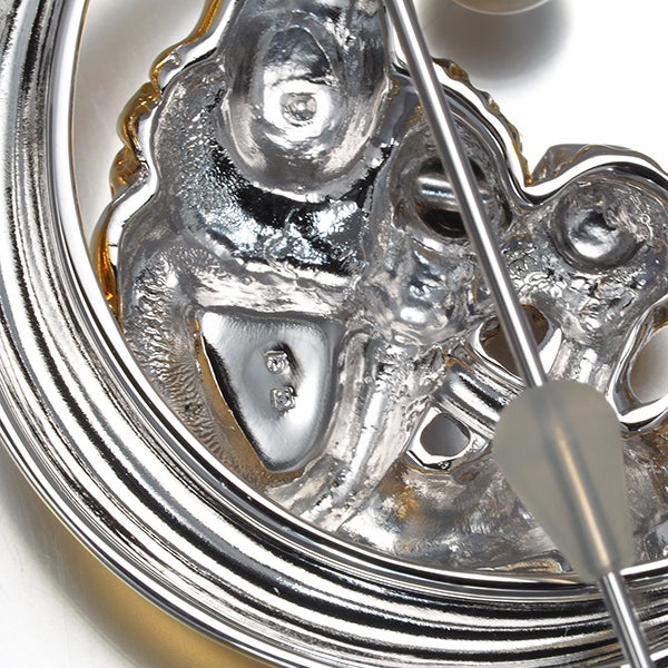 パールホワイトの珠肌に浮かぶ深い干渉色が美しいミキモト厳選アコヤ真珠は、目立つエクボや巻きムラも見られない上質なテリ艶が美しい輝き。実に繊細かつ立体的な作りで描かれたピエロが 月の上で優雅に奏でる印象的な作品です。遊び心溢れるデザインとともに 艶やかに揺れる真珠の美しさをお楽しみいただける ミキモトならではのブローチですよ。
