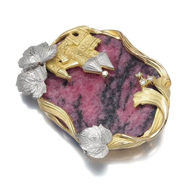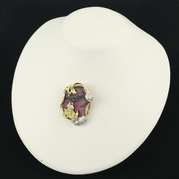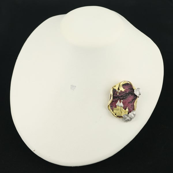 【スプリングキャンペーン!11%対象商品】AsTime ブローチ兼ペンダントトップ ロードクロサイト ダイヤ メルヘン 城 リーフ K18YG/Pt900【中古】BLJ