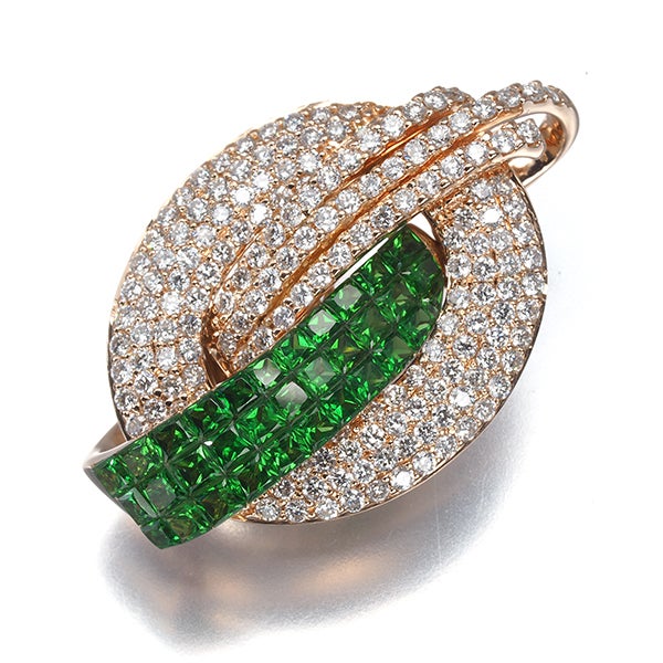 最大限に宝石の美しさを引き出すミステリーセッティングに飾られた鮮やかな彩りに燦然と輝きを放つツァボライトガーネットならではの美しさが目を引く サザンクロスのラグジュアリーなペンダントトップ。丁寧なマイクロパヴェに煌めく厳選ダイヤの上品な煌めきとともに装いを贅沢に演出してくれる逸品ジュエリーですよ。