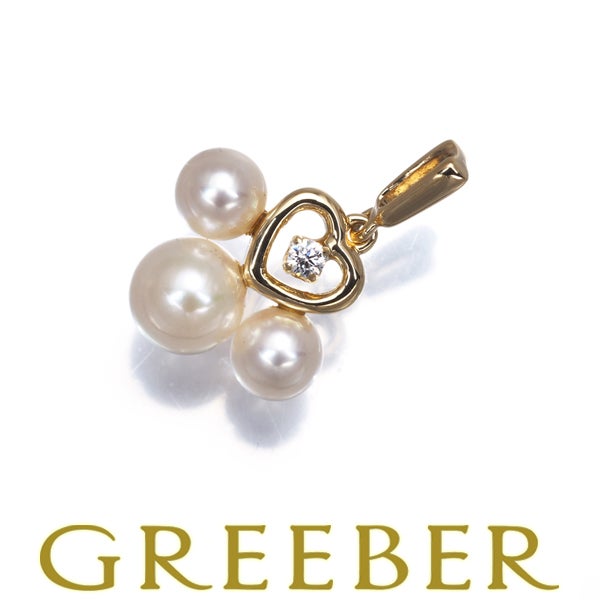 ミキモト ペンダントトップ ベビー パール 真珠 4.1-5.2mm ダイヤ ダイヤモンド ハート K18YG 【中古】BLJ