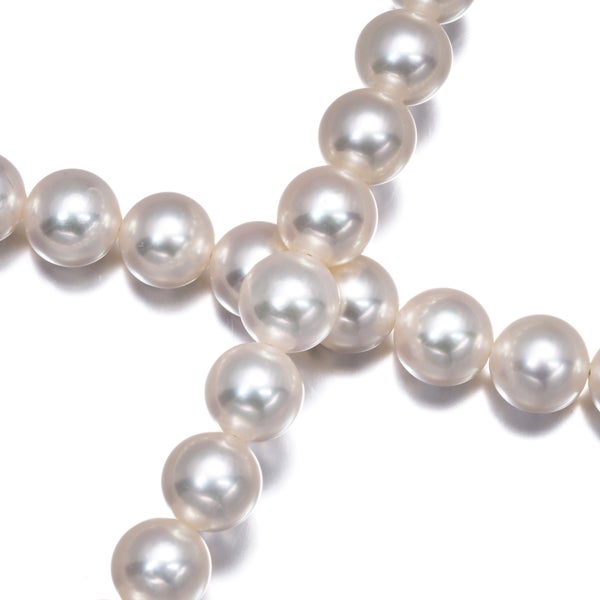 上質な肌艶から放たれるテリと共にピンクの色合いを魅せるタサキセレクトのアコヤ真珠。僅かなエクボなど見られる珠もございますが胸元ではまず気にならない美しい煌めきが胸元を華やかに照らしてくれるネックレスです。